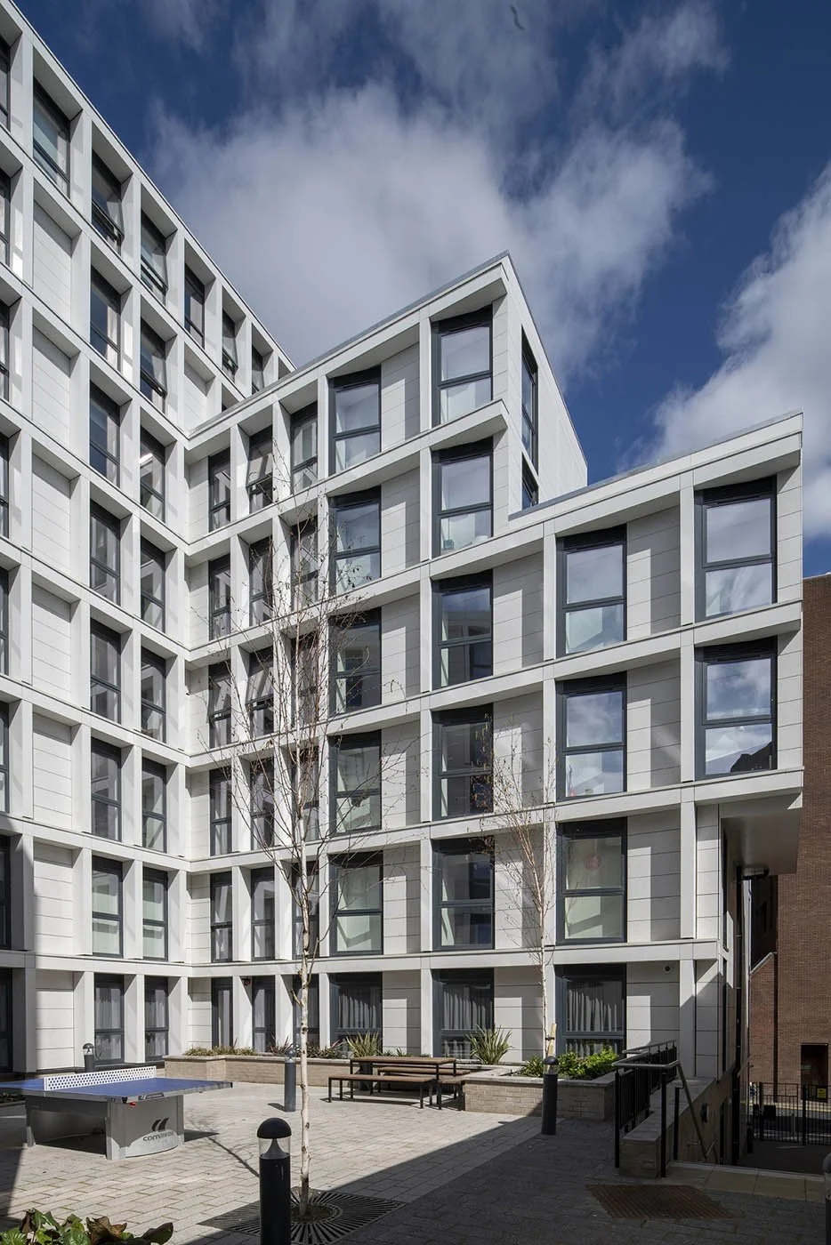 This 225 bedroom development occupies the site of the former Police HQ on Market Street East, close to the Central Conservation Area in Newcastle. There are a number of listed buildings located in the immediate area including Carliol House opposite and St Andrew’s Catholic Church to the South.