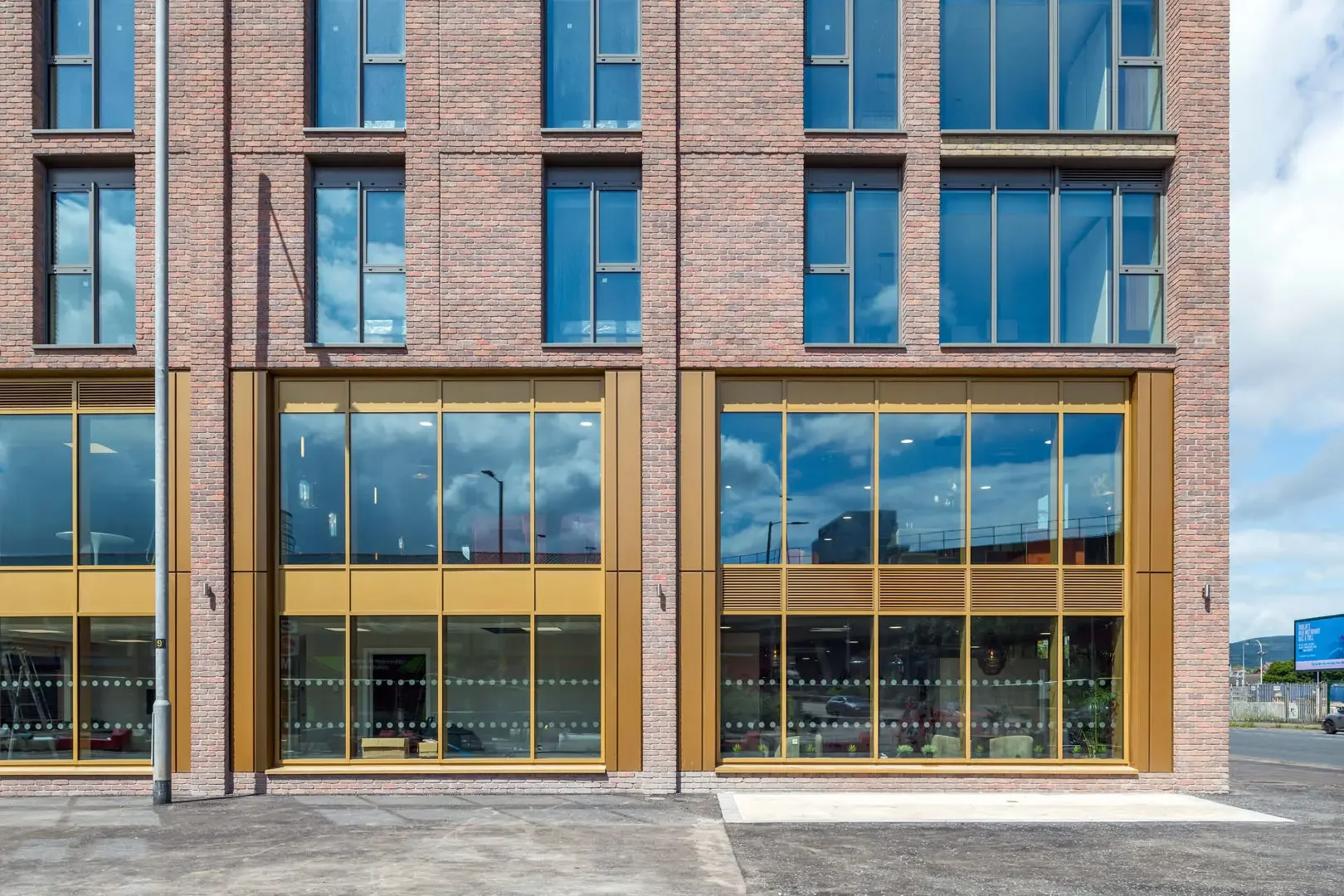 Our Nelson Place project is Belfast’s largest PBSA development, designed to support Ulster University’s expanding campus while revitalising a key brownfield site near the Cathedral Quarter. The 774-bed scheme integrates high-quality student accommodation with state-of-the-art recreational facilities, including a four-court sports hall, gym, and virtual reality golf simulator. A mix of red brick, metal cladding, and glass creates a dynamic street frontage, while a high-performance thermal envelope and acoustic glazing ensure sustainability and comfort.