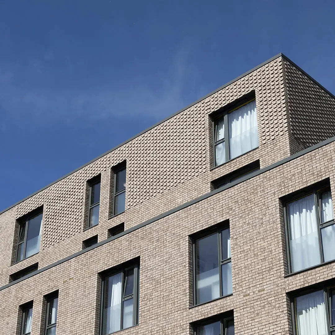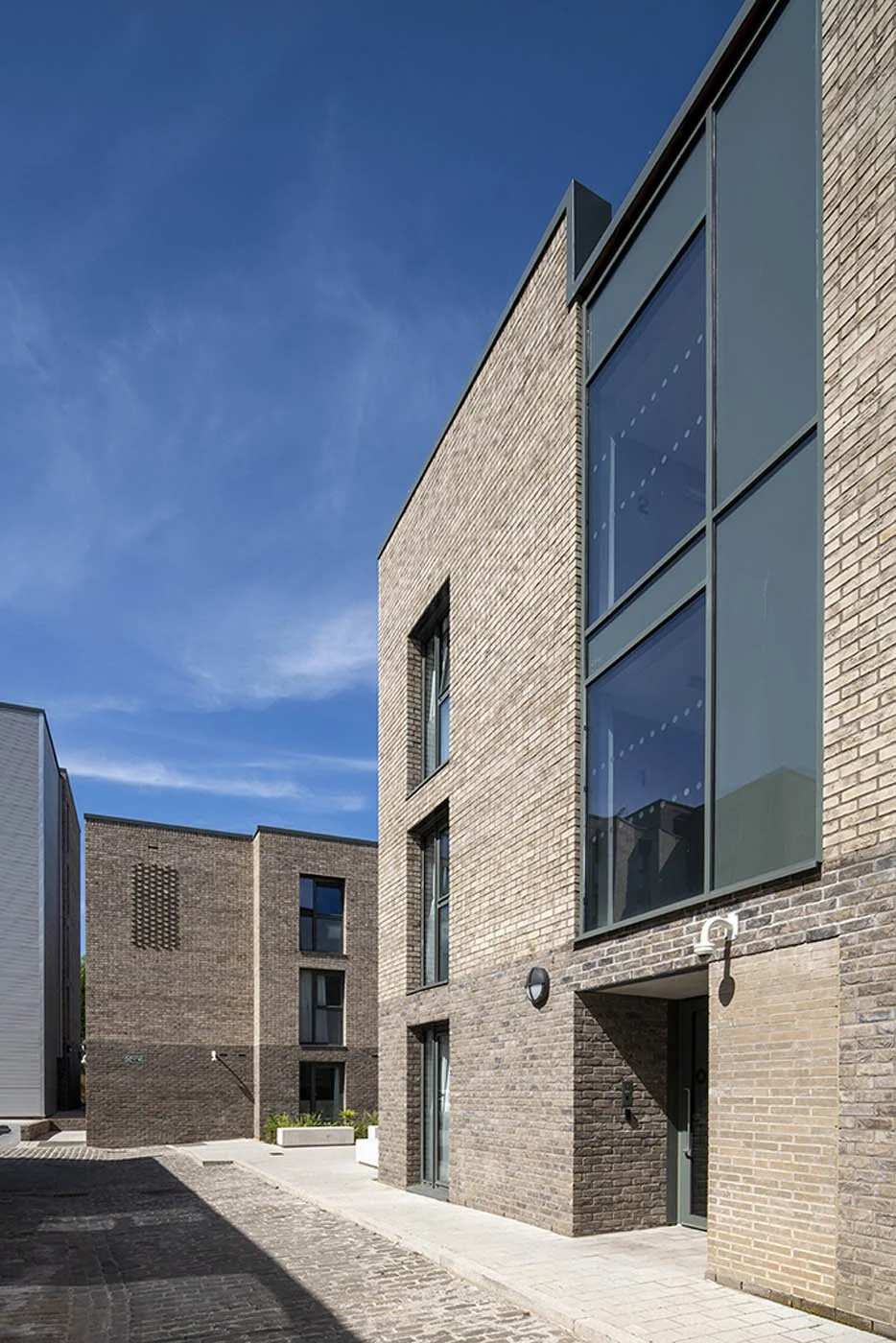 Occupying the site of a former printworks on Causewayside in Edinburgh the development comprises 146 studios arranged within 3 blocks. Crafted from a palette of complimentary facing brick and aluminium curtain walling the buildings respond to the adjacent context by infilling the gap to the existing tenement height and reinforcing the main street frontage before dropping down to 3 storeys at the rear to create a more intimate courtyard environment.